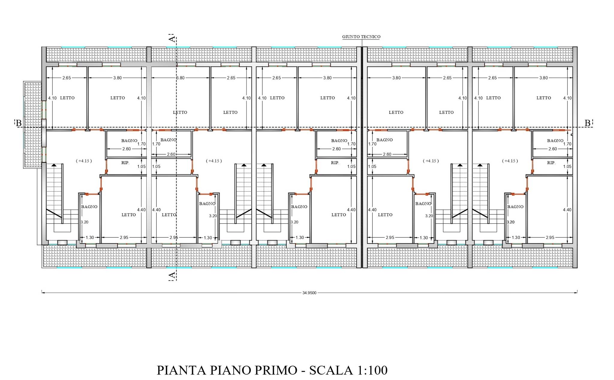 Piano Primo zona notte: camera da letto matrimoniale con bagno in camera, due camerette, bagno e ampie balconate